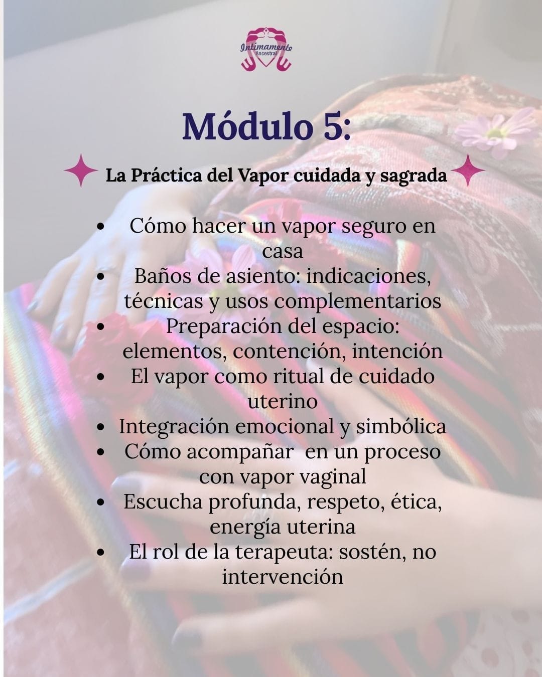Esta formación está diseñada para guiarte paso a paso en el arte ancestral del cuidado del útero a través del calor, las planta